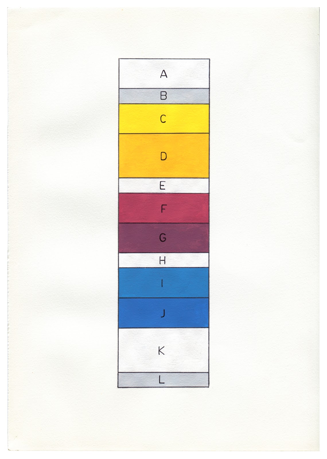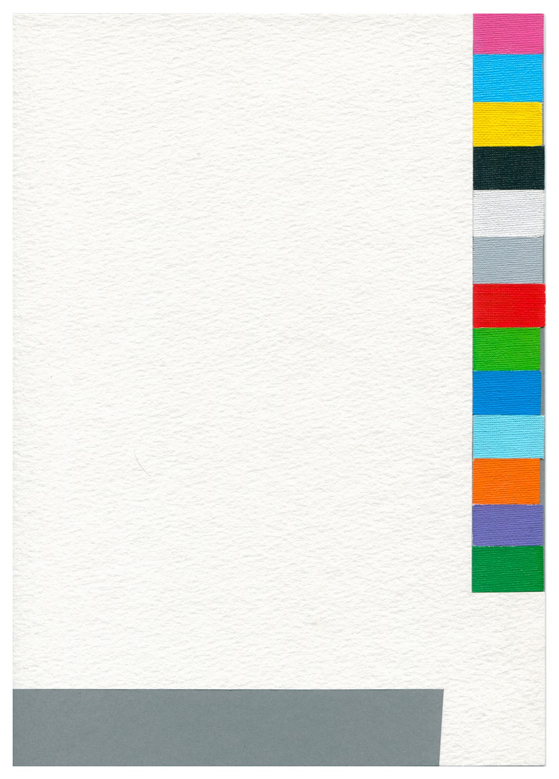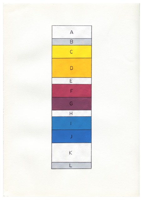 Posted on December 5, 2014October 10, 2017 by hernani gil A cross-section representation of the layers within a piece of developed colour 35mm negative film Acrylic and marker on paper 29.7 x 21 cm 2012 Process control patches Acrylic on canvas, hand-cut paper mounted on photo mounting board 29.7 x 21 cm 2016 Related