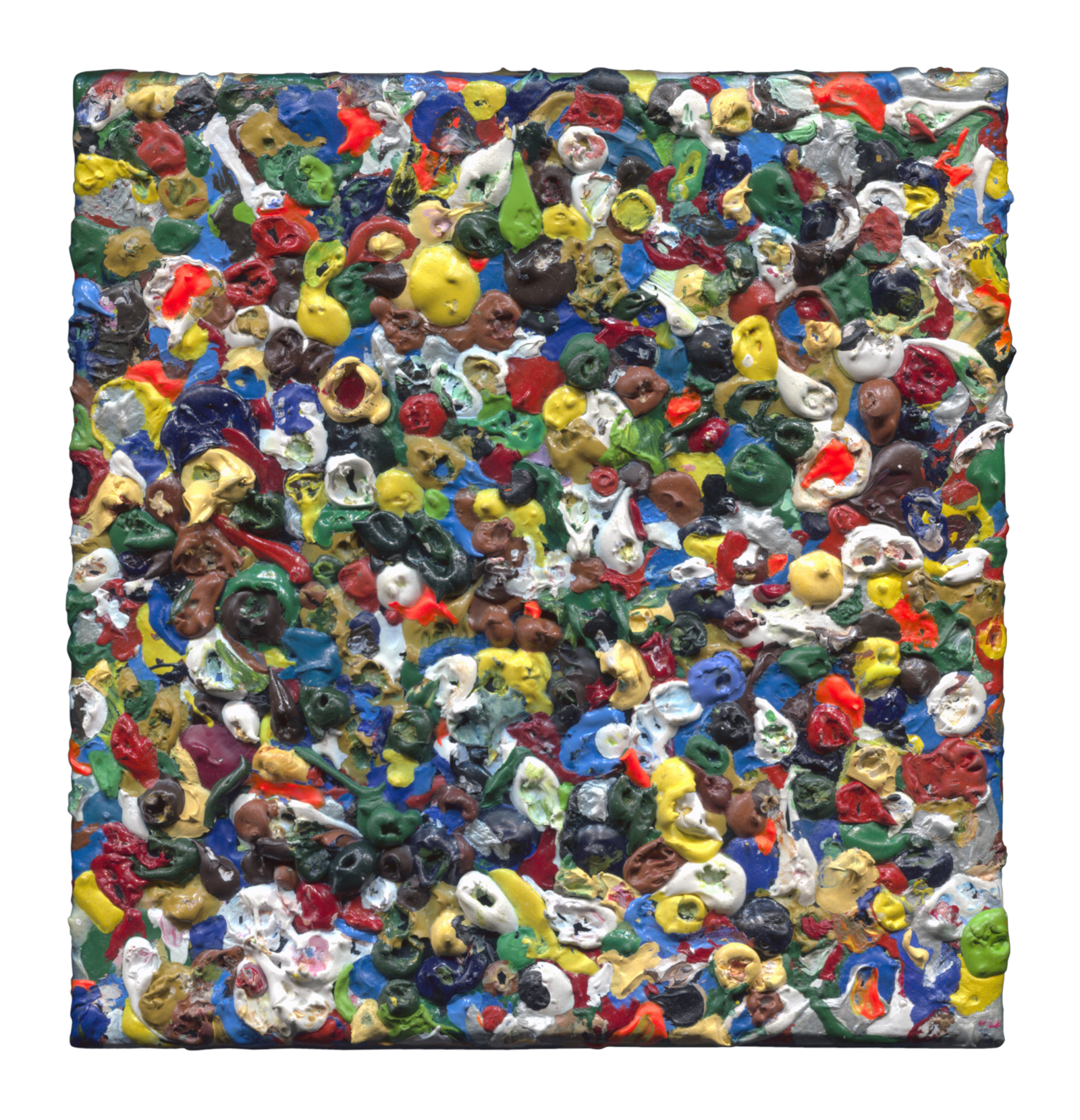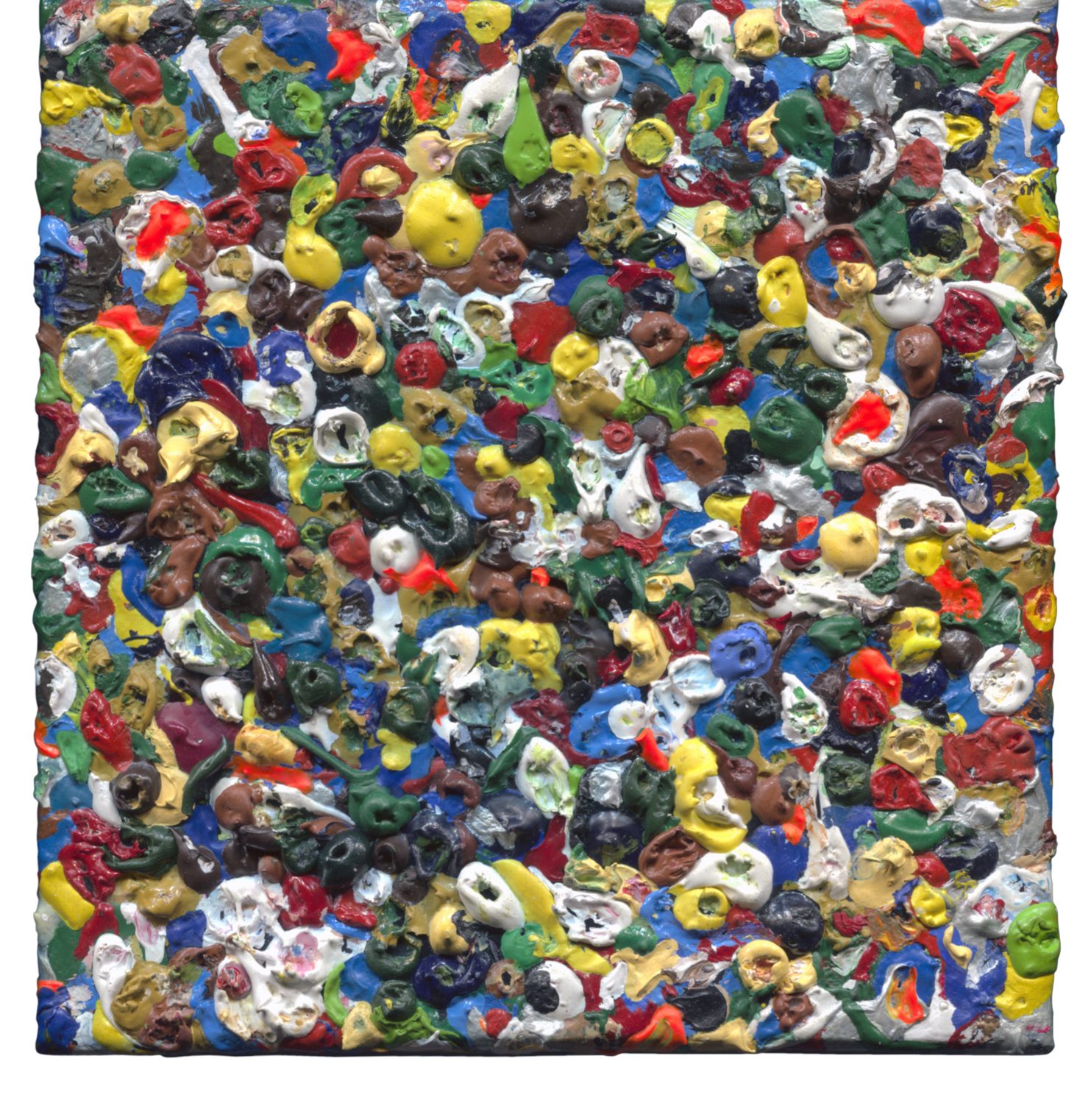 Droplets of dry acrylic paint glued on canvas
