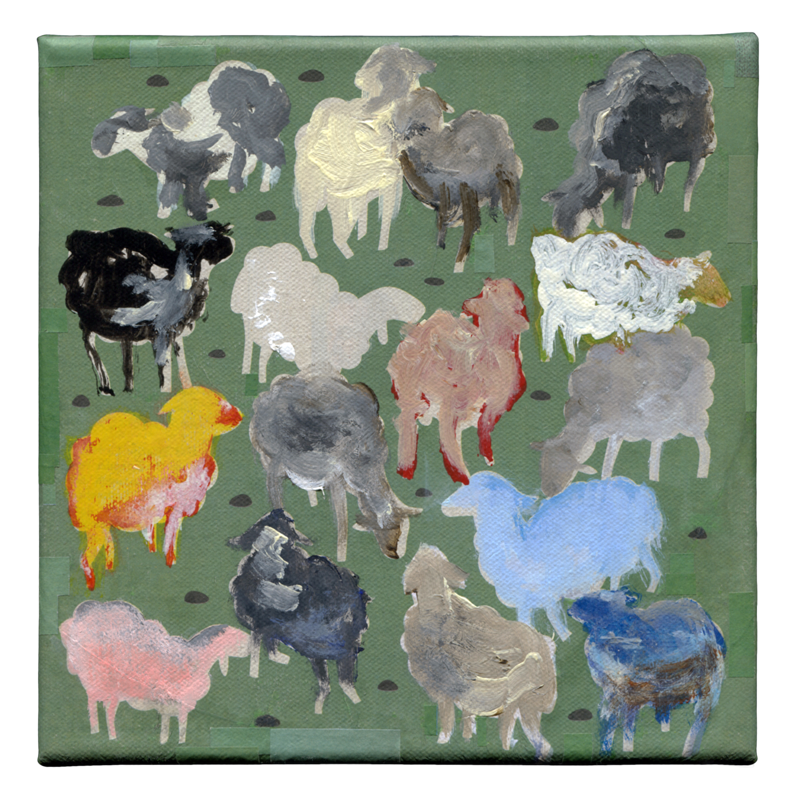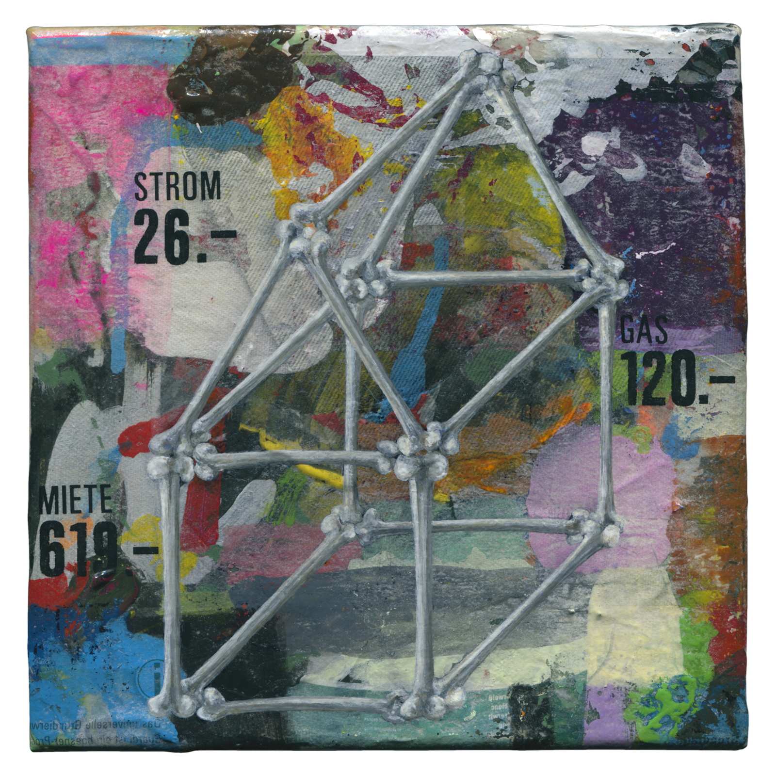 Gesso, enamel, dry acrylic glued on canvas