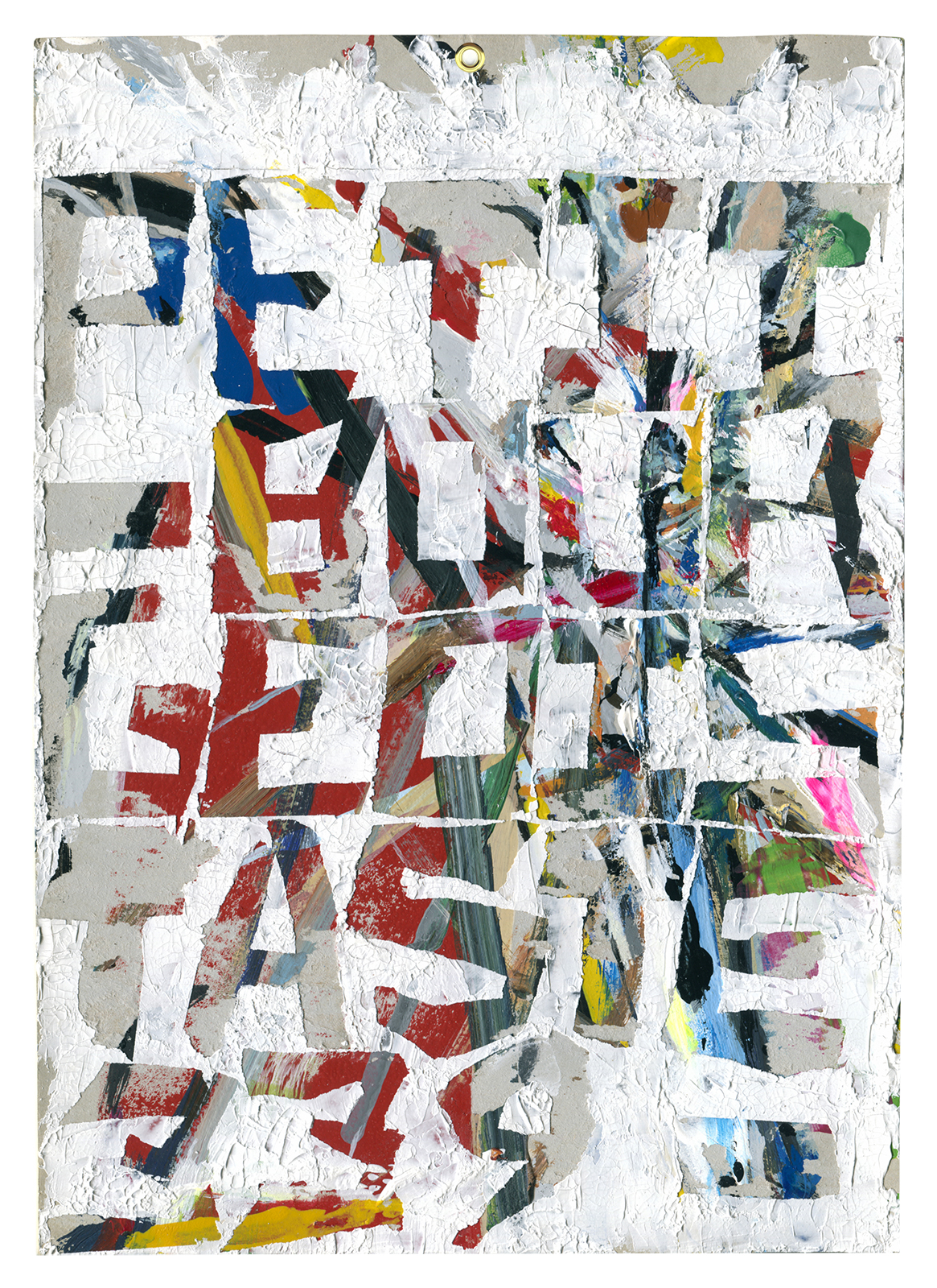 Acrylic, enamel, painted newspaper on canvas